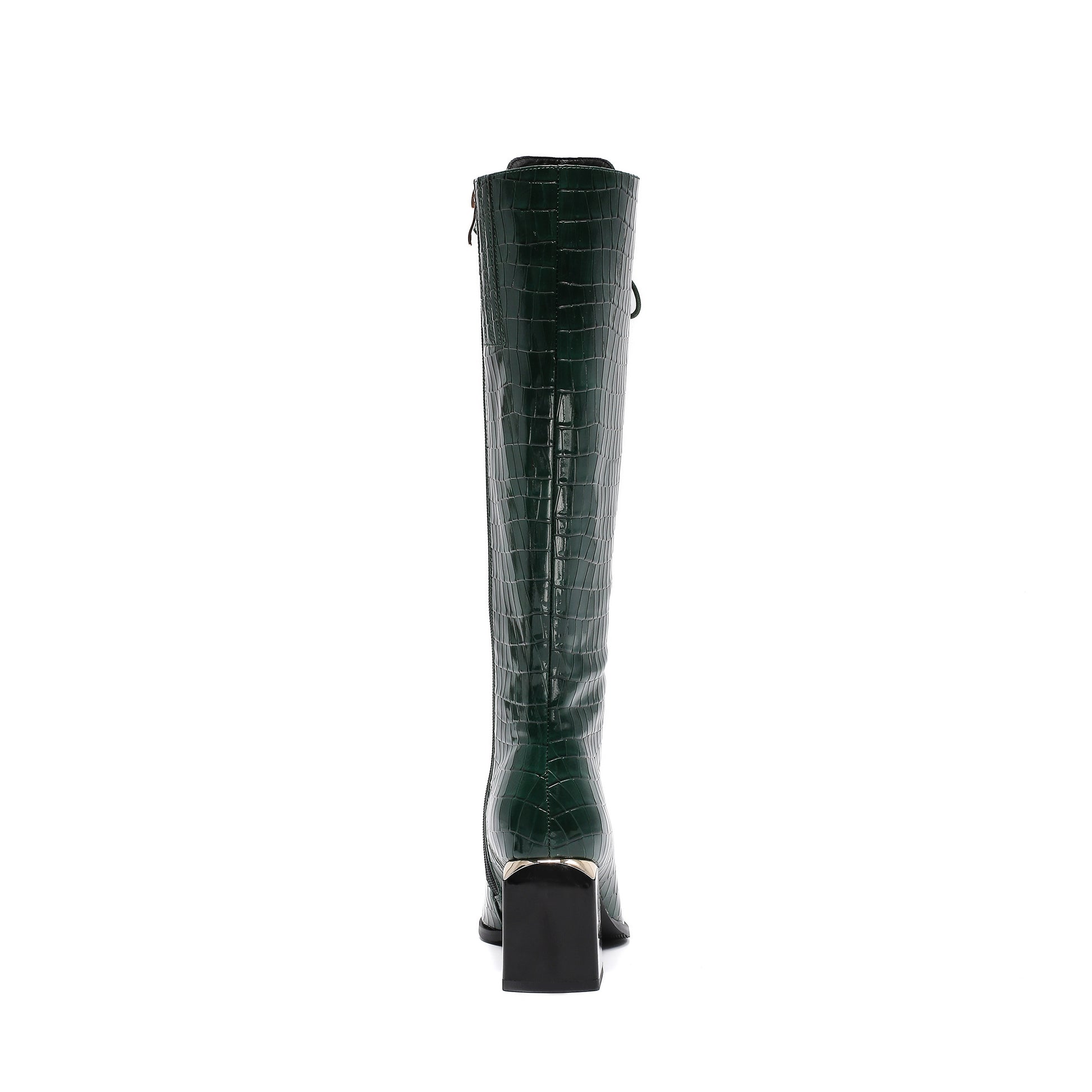 This Classy Ninety Union Fuji Boot. This knee-high features a bold lace-up front with a chunky block heel and croc-print finish for added style.