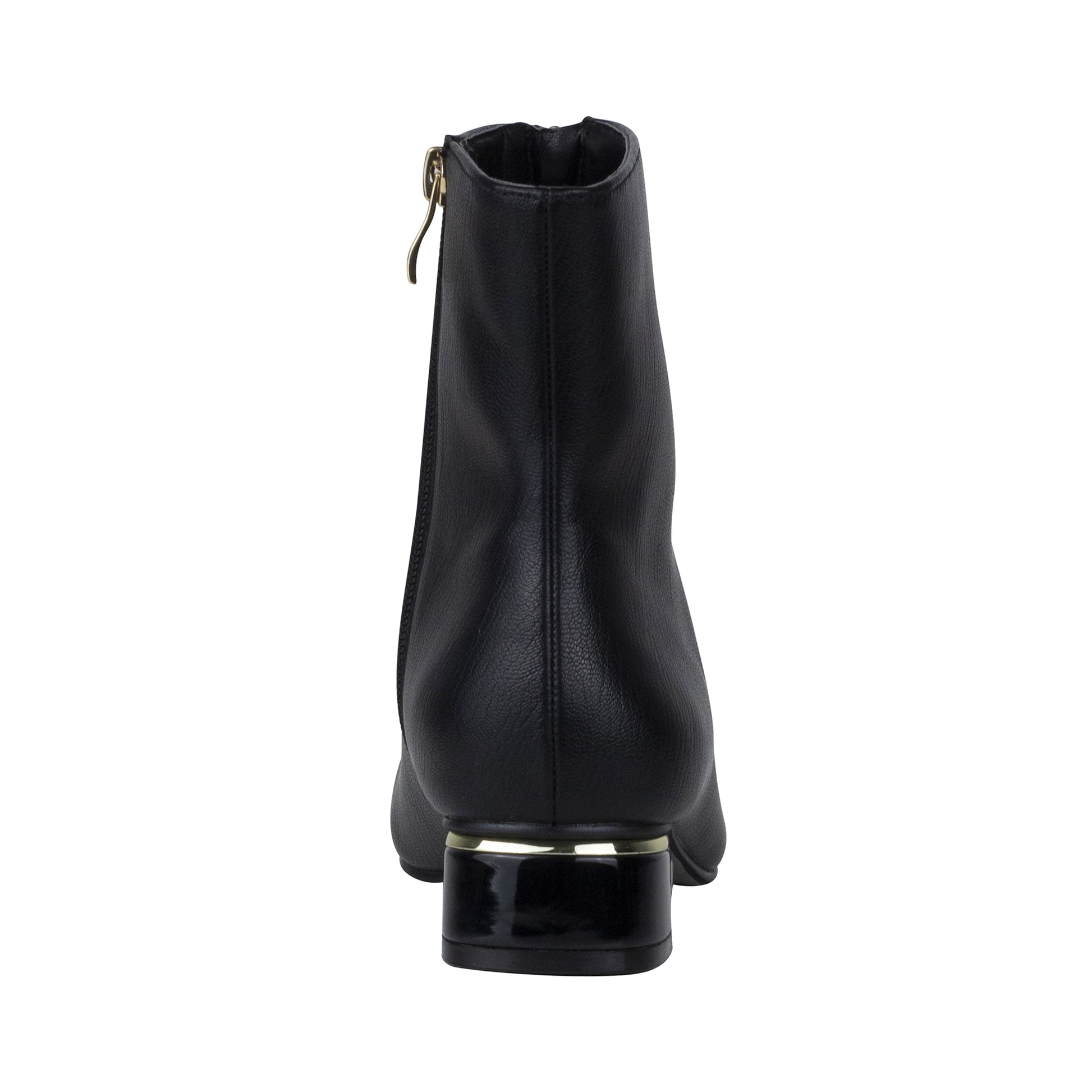 This sleek Elite bootie from Ninety Union. The classic silhouette shows off its dual zipper closure and metallic-accented heel. Great to dress up or to wear casual.