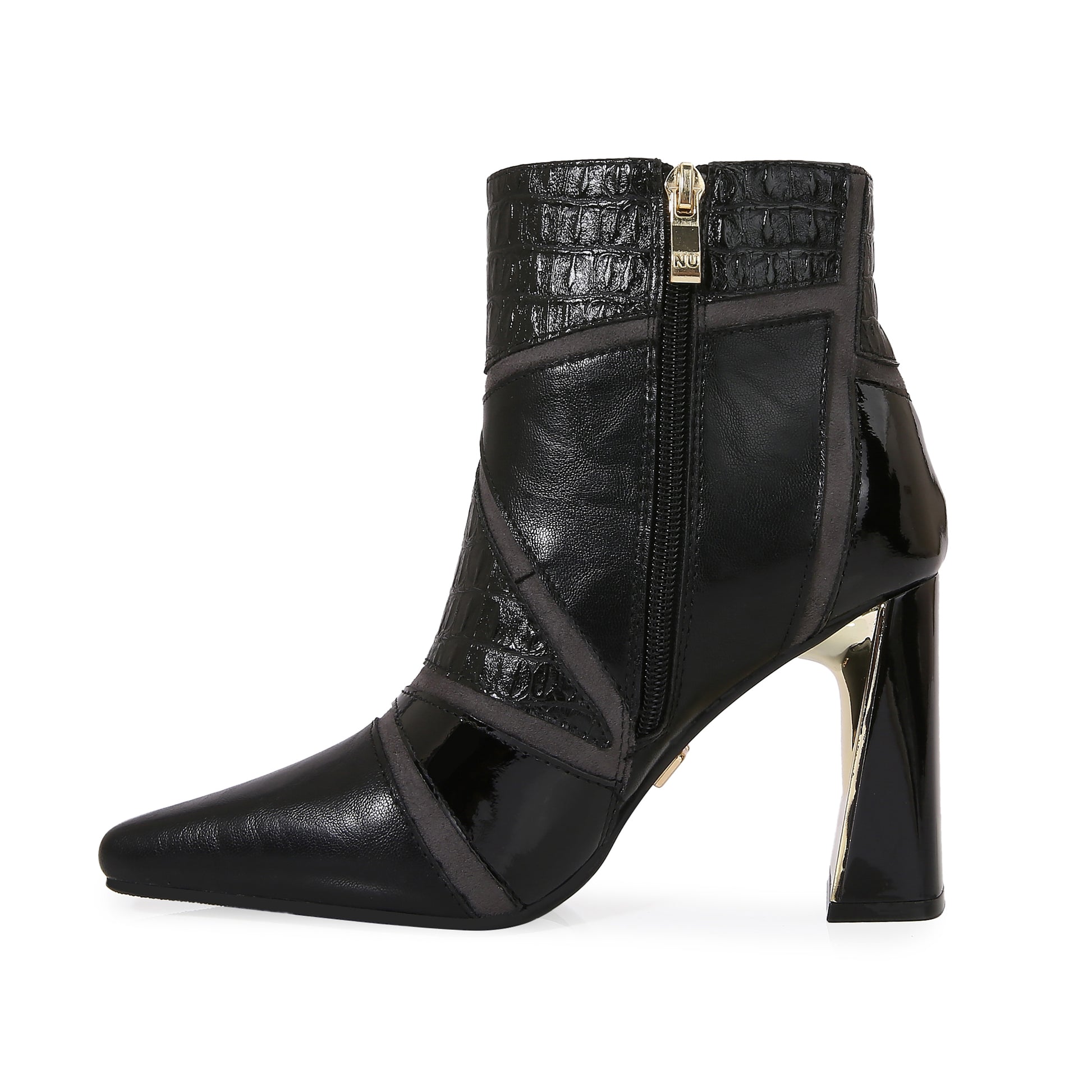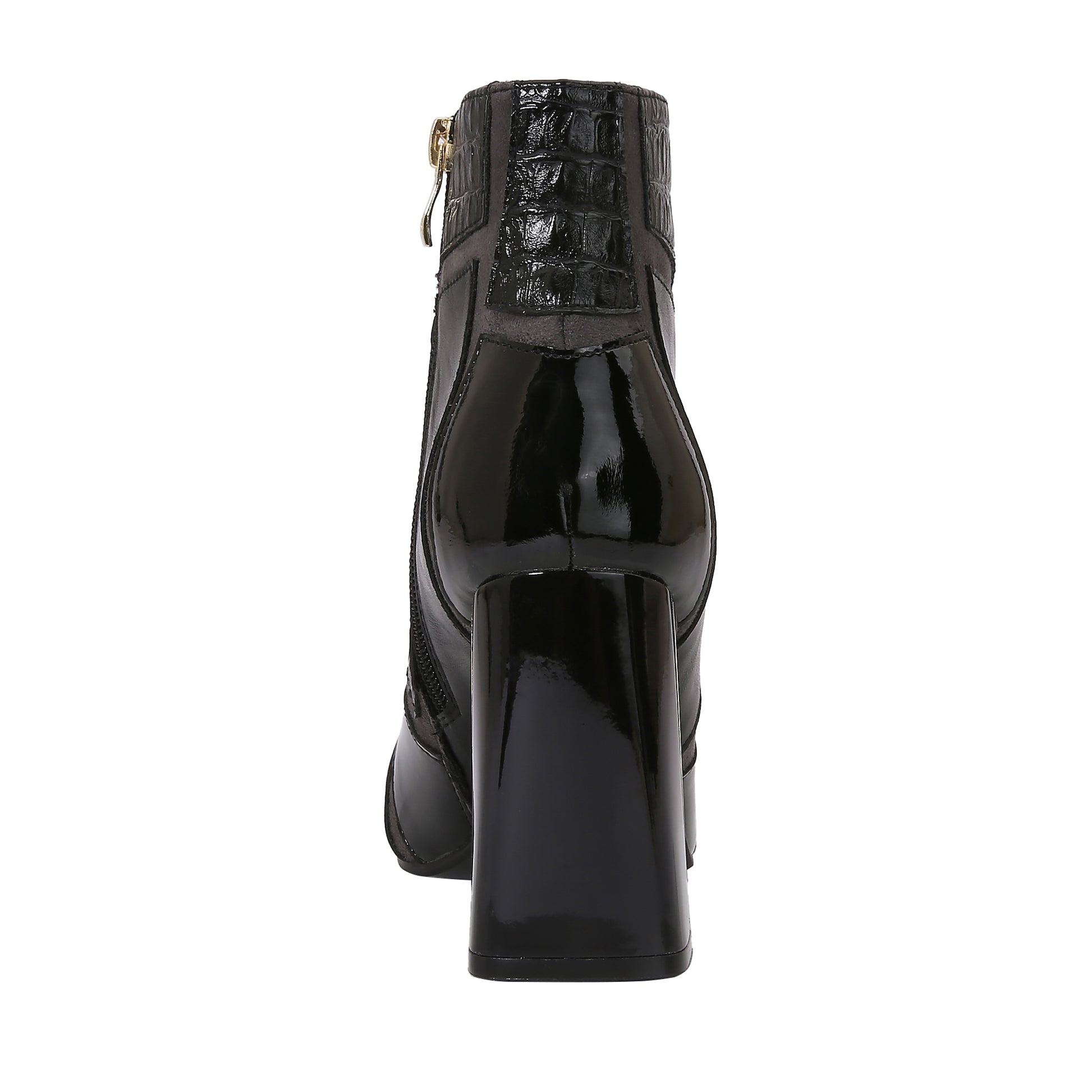 Feebee from Ninety Union will make a stylish statement. This ankle boot features a patchwork upper with a tapered square toe and metallic accent on the block heel for added drama. The patch work gives this bootie a chic look that will rock any outfit.